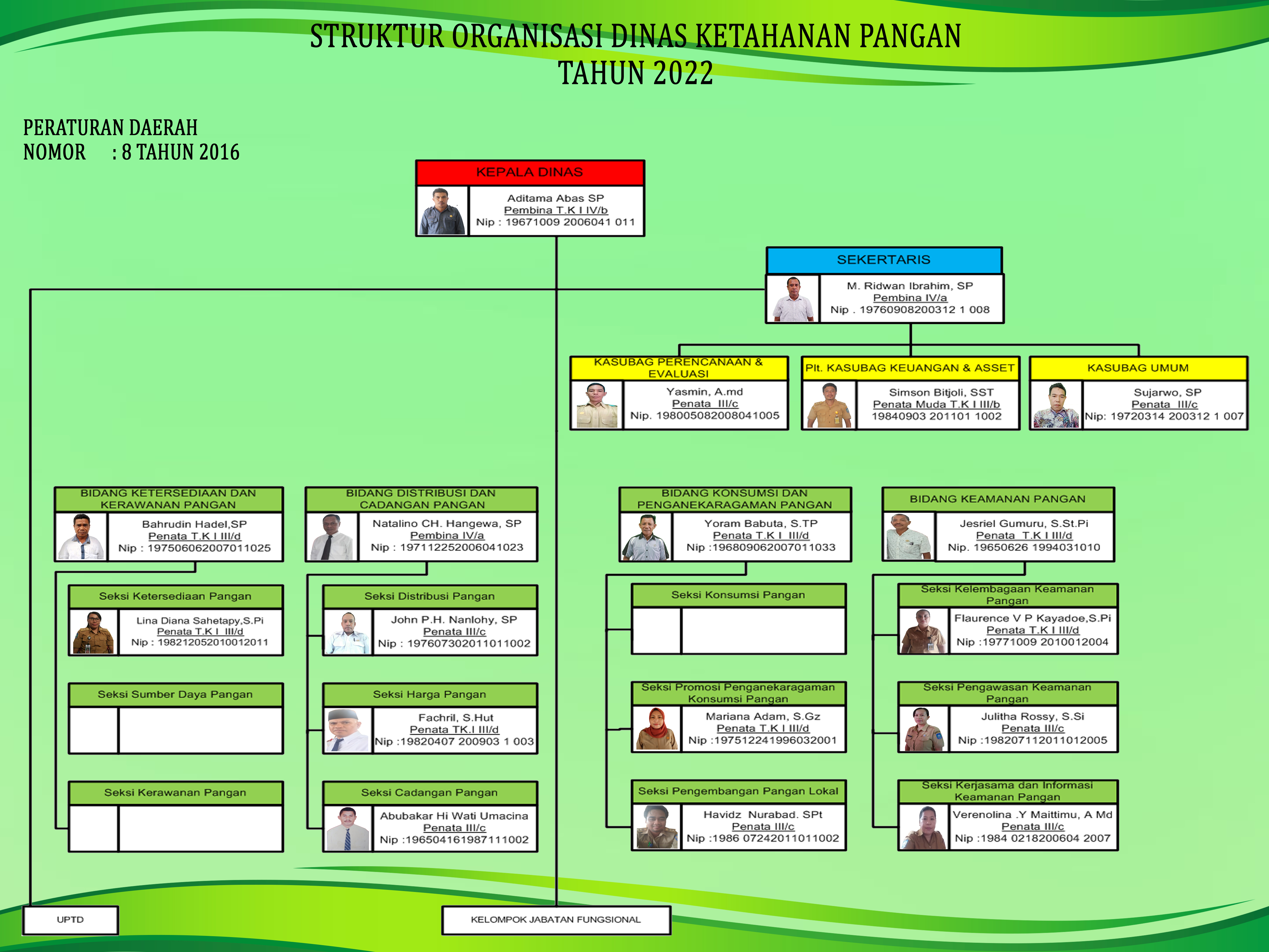 Susunan Organisasi Dinas Ketahanan Pangan, terdiri dari :